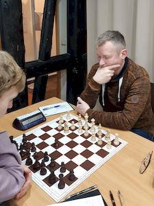 ![]() Dirk Wetzig mit 6 Punkten aus 7 Partien Eiche II empfing in der achten Runde der 2. Landesklasse Staffel B die Mannschaft des SC Rote Rüben Leipzig im Hotel Alte Mühle. Ohne zwei Stammspieler, jedoch mit starkem Ersatz waren wir gegen den Tabellenletzten klarer Favorit. Von Beginn an war das so nicht zu spüren. Aber so nach und nach setzten sich die „Eichen“ in Position. Marco Sussbauer und Klaus Söll fingen dann schon relativ zeitig an, Punkte einzusammeln. Bald zogen Jens Arnold und Dirk Wetzig nach und stellten zwischenzeitlich auf 4 zu 0. Zähe ging es auf den Brettern von Uli Kötzsch, Günter Schmidt und Jörg Dölle zu. Letztendlich setzten sich die Eichen durch. Ernsthafte Gegenwehr erfuhr Udo Waltenberger an Brett 2. Ein „Ehrenremis“ verhinderte die Leipziger Totalblamage. Eiche II fuhr mit 7,5 zu 0,5 ein super Ergebnis ein. Eiche III trat in der achten Runde der 1. Bezirksklasse in Döbeln bei der Zweiten des ESV Lok an – allerding nur an sechs Brettern (!). Doch Jörst Fontana, Karli Döring, Hendrik Gronloh und unser Youngster Till Weißbach holten volle Punkte, die der amtierende Mannschaftsleiter Jonas Uhlig mit einem Remis zum 4,5 zu 3,5 Sieg komplettierte. Am 05.05.2024 tritt Eiche II in der 9. und letzten Runde auswärts beim SC Leipzig-Lindenau an und Eiche III empfängt zu Hause im Sportlerheim die zweite Mannschaft des Glauchauer SC 1873. |