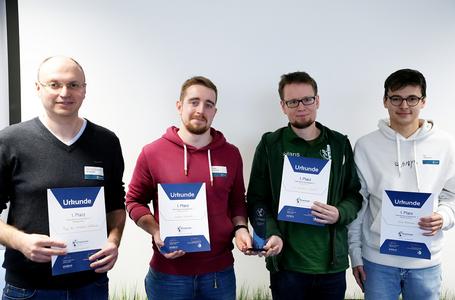 ![]() Einzelsieger Dr. Sebastian Lämmel nimmt mit seinem Sieger- Team „Mathematiker“ die Sieger-Urkunden in Empfang Am 16.11.2024 machten die axilaris GmbH und der SV Eiche Reichenbrand e.V. ihr Versprechen wahr und riefen das Chemnitzer Schachmatt- Firmenturnier ins Leben. Geschäftsführer Thomas Schumann begrüßte die Freunde des Schachs aus zehn Betrieben und Branchen. Das Event wurde als Einzelturnier im Schweizer System durchgeführt. Die besten Vier jedes Teams kamen mit ihrer Platzziffernsumme in die Mannschaftwertung. Ausgezeichnet wurden die Berufs- oder Branchenteams in den Kategorien A (mit 2 Aktiven bzw. DWZ > 1500), Kategorie B (mit 1 Aktiven) und Kategorie C (ohne Aktiven). Das Einzelturnier der Aktiven gewann einer der vierzehn Eiche-Spieler, nämlich Dr. Sebastian Lämmel vor FM Florian Fuchs und Volkmar Brand. Bei den DWZ < 1500 siegte Thomas Kaiser. Den zweiten Platz holte sich Dr. Branko Stojanowski vor Sebastian Freiberg. In der Hauptkategorie der Teamwertung belegten die „Mathematiker“ der TU Chemnitz den ersten Platz und nahmen den Siegerpokal in Empfang. Die Kategorie B gewann „ENAS“ vom Fraunhofer Institut für Elektronische Nanosysteme. In der Kategorie C der Nichtaktiven sicherten sich“ Die Turbo-Taktiker“ der Porsche Leipzig GmbH den Siegerpokal. Die Wettkämpfe der 52 Teilnehmer fanden im angenehmen Ambiente eines sehr schönen Spiellokals und beim Pausensnack und interessanten Gesprächen im axilarium statt. Der FIDE-Schiedsrichter André Martin (Präsident des Schachverbandes Sachsen) leitete das Turnier umsichtig und führte manchen Nichtaktiven erstmalig in die „Zauberwelt“ des Schachs ein. Die Mitarbeiterinnen der axilaris GmbH ließen die Veranstaltung zu einem schachlich-kulturellen Höhepunkt werden, wenn auch der Turnierleiter Günter Schmidt bedauerte, dass die Stadt Chemnitz offenbar kein Interesse daran hat, Schach in die Aktivitäten des Kulturhauptstadtjahres 2025 einzubeziehen. Die „Eiche“ und axilaris werden unbeirrt 2025 das Schachmatt-Firmenturnier durchführen – und vielleicht auch in den Folgejahren diesen „Schach-Wirtschaftsgipfel“ zur Tradition werden lassen. Die Schachfreunde bedanken sich jedenfalls für dieses Engagement bei der axilaris GmbH und garantieren weiterhin gute Zusammenarbeit! |