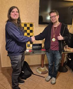 Das Meisterschaftsturnier 2023/24 wurde wieder in zwei Gruppen, A und B, ausgetragen. Favoriten im Kampf um den Titel des Vereins- oder Reichenbrander Meisters waren nebst Titelverteidiger Dirk Wetzig weitere vier Spieler der zweiten Mannschaft. Vor der letzten Runde lagen die beiden „Joker“ für die Oberliga Wolfgang Beyer und Janek Weißpflog punktgleich an der Spitze – und hatten in einem echten Finale gegeneinander anzutreten. In einer kämpferischen Partie versuchte Janek mit Schwarz alles, um einen Vorteil zu erreichen. Das gelang ihm schließlich auch. Doch der war so klitzeklein, dass er das Damenendspiel mit einem Mehrbauern doch nicht gewinnen konnte. Nach 114 Zügen gab er die Partie remis. Die vorbereiteten Varianten der Wertungsberechnungen waren nicht brauchbar, da eine andere der letzten Partien kampflos endete. Bei der eingetretenen Punkt- und Wertungsgleichheit brachte nur die englische FIDE-Turnierordnung bzw. die zweite Wertung nach Sonneborn-Berger eine ganz knappe Entscheidung zu Gunsten des „Kämpfers“ Janek Weißpflog. In der B-Gruppe waren einige Spieler der dritten Mannschaft und der Reserve angetreten. Dort konnte sich der Vorjahressieger Hendrik Gronloh wieder durchsetzen. Zweiter wurde unser talentierter Youngster Till Weißbach, der nur gegen den Gruppensieger einen vollen Punkt abgab. Das Turnier wird für die Deutsche Wertzahl (DWZ) ausgewertet – und hat damit eine ähnliche sportliche Wertigkeit wie die Mannschaftskämpfe. Die Eiche-Schachfreunde gratulieren Janek ganz herzlich! |